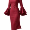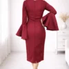 ¿Querés un vestido hable por vos antes de que digas una palabra? Encontraste el diseño indicado ! ,Con mangas campana que aportan un toque dramático y a diferencia de otros vestidos que te “cortan” la figura con costuras horizontales en la cintura, la ventaja técnica de este vestido son sus líneas verticales infinitas. Este diseño guía el ojo de arriba hacia abajo sin interrupciones, logrando un efecto visual que alarga la figura de forma inmediata.