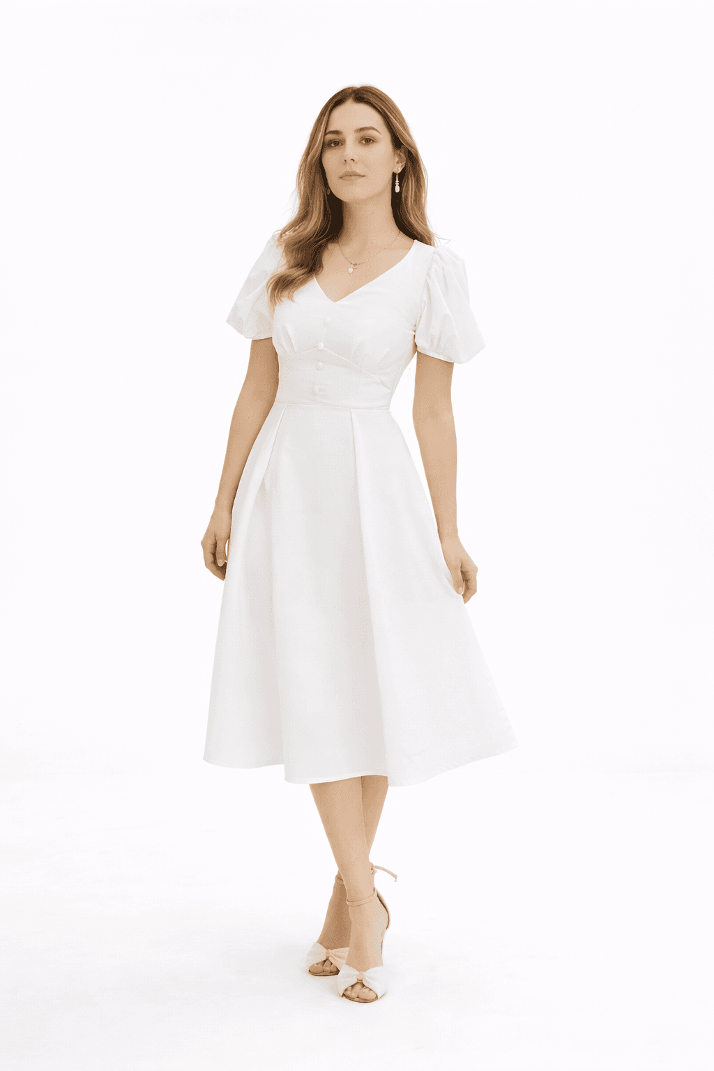 • El escote y los botones: Un diseño que abraza tu figura en el lugar correcto. Es esa mezcla entre “soy una chica romántica” y “sé perfectamente lo bien que me queda este vestido”.